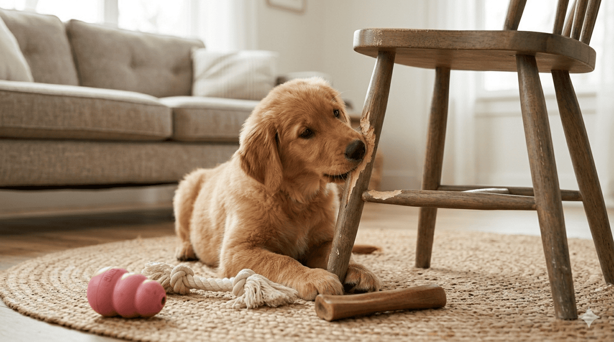 Šuniukai, kuriems dygsta dantys, dažnai jaučia diskomfortą ar net skausmą. Kramtydami įvairius daiktus jie bando šį pojūtį sumažinti. Deja, baldai dažnai tampa lengvai prieinamu „taikiniu“.