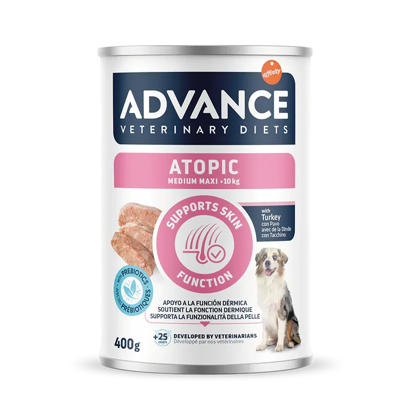 Advance Atopic Medium Maxi dietinis pašaras skirtas suaugusiems vidutinių ir didelių veislių šunims su linolo rūgštimi (LA), eikozapentaeno rūgštis (EPR), dokozaheksaeno rūgštis (DHR), kurios padeda palaikyti sveiką odą ir blizgų kailį šėrimosi metu. Išskirtiniai baltymų šaltiniai sumažina alergines reakcijas.