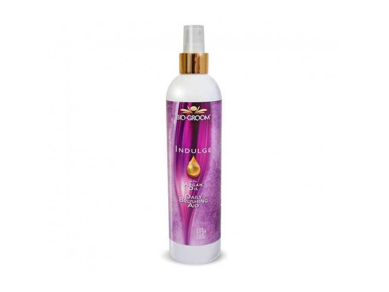 Indulge Spray su argano aliejumi – kasdieninio naudojimo kondicionierius apsaugo kailį nuo vėlimosi, puoselėja odą ir kailį. Kondicionierius greitai susigeria į odą ir kailį, nelipnus, neriebus. Tinkama priemonė trumpaplaukiams ir ilgaplaukius šunims. Indulge Spray drėkina ir maitina kailį, jis tampa šilkiniu.