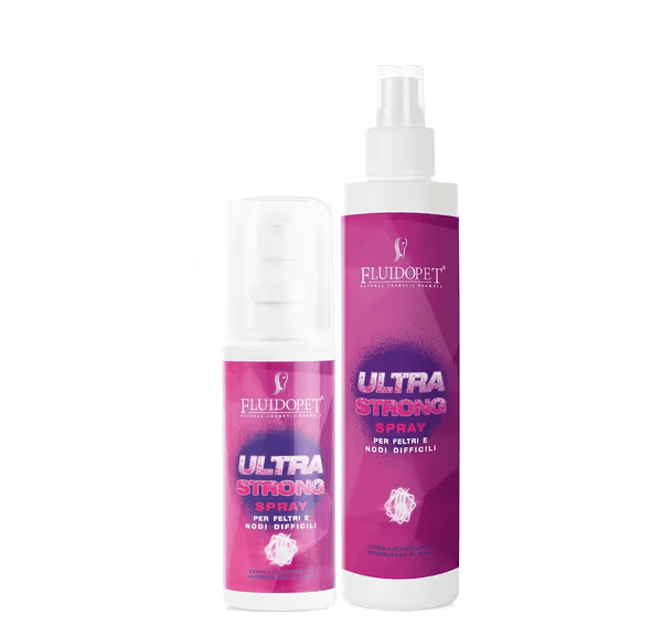 FluidoPet Ultra Strong purškiklis profesionalus preparatas su keratinu, kokosų ir simondsijomis kailio šukavimui 100 ml