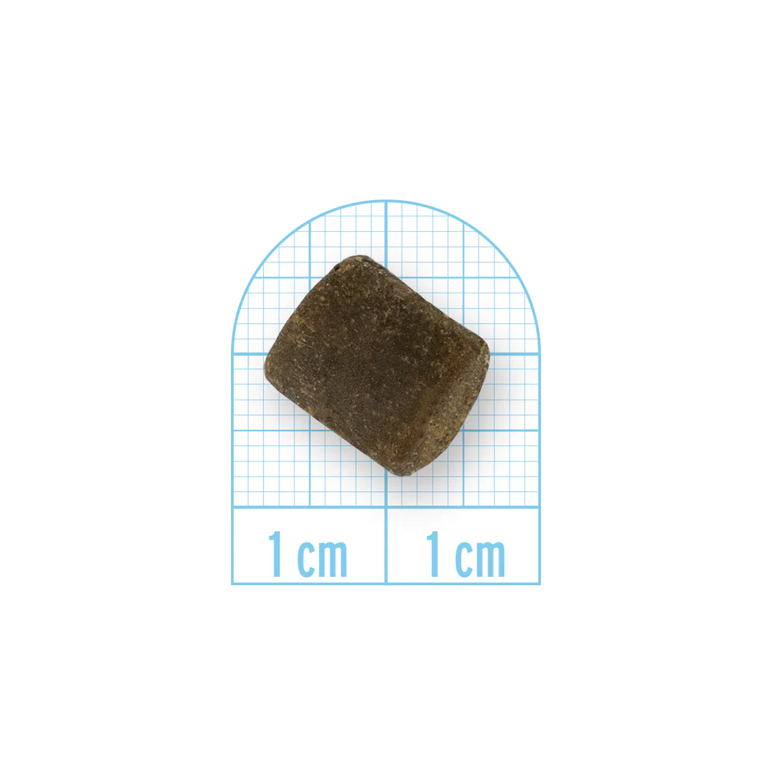 Sudėtis: hidrolizuota lašiša 26%, batatai, bulvių ląsteliena, lubinų lukštai, žirnių dribsniai, valgomųjų maniokų krakmolas, alaus mielės, dumbliai, saulėgrąžų aliejus. Priedai: technologiniai priedai: konservantai.