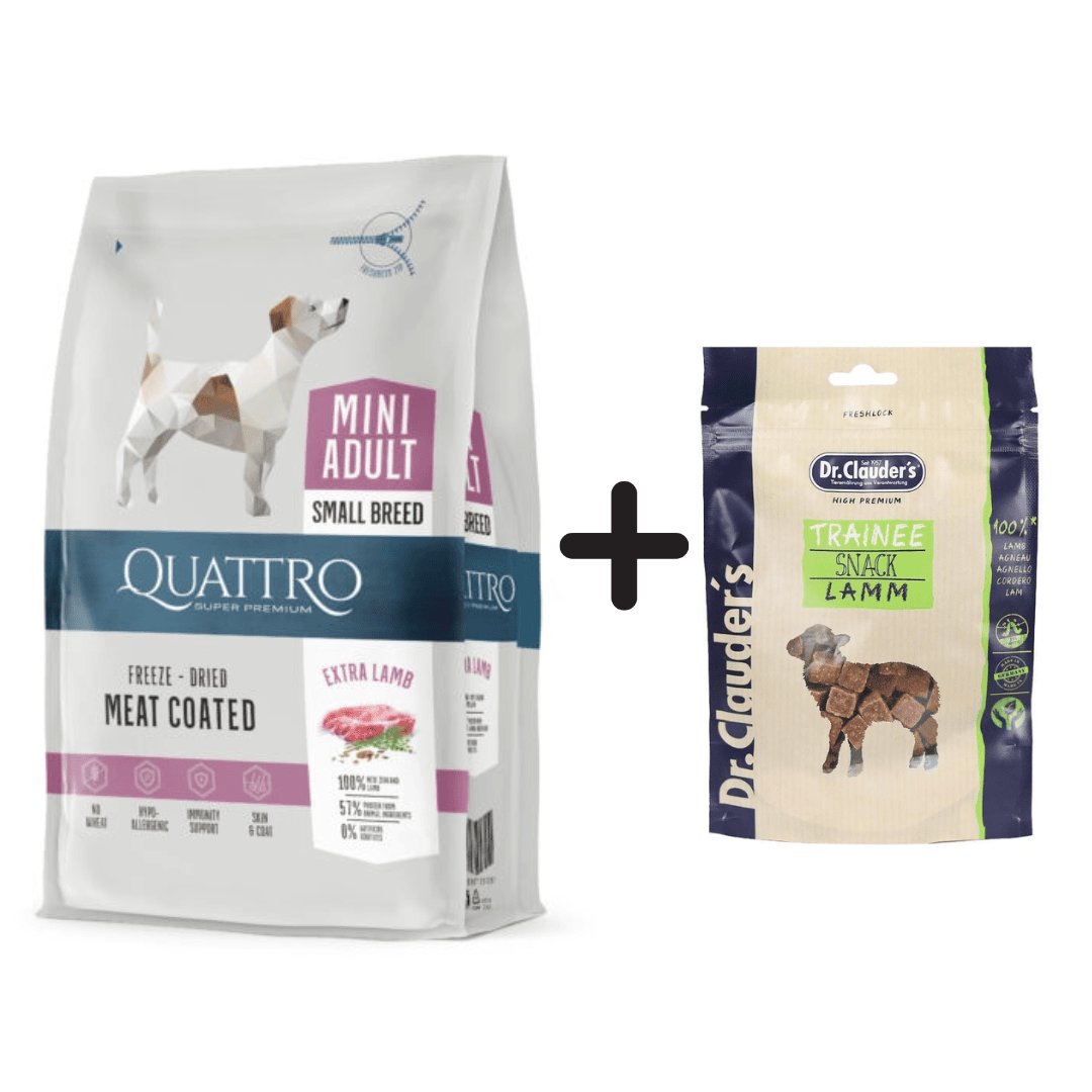 Quattro Mini Adult Lamb sausas maistas šunims 7 kg + Dr.Clauder’s skanėstai