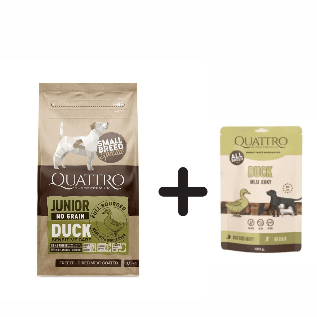 QUATTRO Small Breed Junior sausas begrūdis maistas su antiena