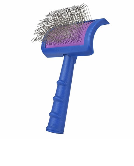 • Show Tech Tuffer Than Tangles LongReach šepetys itin ilgais dantukais – šepetys violetine pagalvėle yra skirtas tankiam, storam ir sunkiai prižiūrimam ilgam kailiui.
