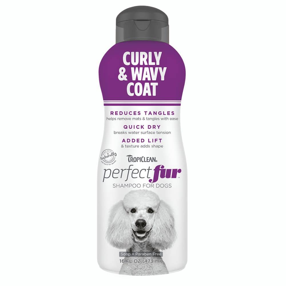 TropiClean PerfectFur™ Curly & Wavy Coat Shampoo – natūralus šampūnas, specialiai sukurtas šunims su garbanotu ar banguotu kailiu, tokiems kaip pudeliams, bišonams, auksaspalviams doodle, seniesiems anglų aviganiams ir kitoms veislėms, turinčioms tankų, purų kailį.