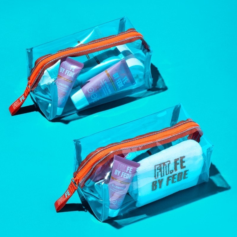FIT.FE by Fede „Recharge & Go“ veido ir kūno priežiūros priemonių rinkinį sudaro FIT.FE by Fede „The Reviver Body Lotion“ kūno losjonas, FIT.FE by Fede „The Refresher Body Wash“ kūno prausiklis, FIT.FE by Fede „The Exfoliator Facial Peeling Cleanser“ veido prausiklis, FIT.FE by Fede „The Reliever Face Gel-Cream“ veido kremas ir rankšluostukas.