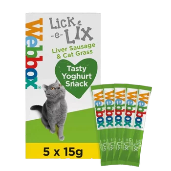 Webbox Lick-s-Lix skysti skanėstai su kepenine dešra ir kačių žole suaugusioms katėms ir kačiukams N5x15g