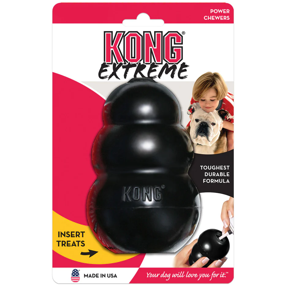 KONG Exreme šunų žaislas yra iš pačių patvariausių KONG gumos. Sukurtas patiems stipriausiems kramtytojams, KONG Extreme Tobulina šunis patenkinamas jų natūralius instinktus. KONG unikali natūralios, kietos gumos formulė yra labai patvari ir nenuspėjamai šokinėja, idealiai tinka šunims, kurie mėgsta kramtyti ir tuo pačiu žaisti. Norite prailginti žaidimo laiką? Nepamirškite pašaro, skanėstų ir riešutų sviesto. Prisidedame prie smagumo pridėti KONG skanėstų ir pagardinimo KONG Easy Treat. KONG su skanėstais dar galima ir sušaldyti – taip žaidimai truks dar ilgiau.